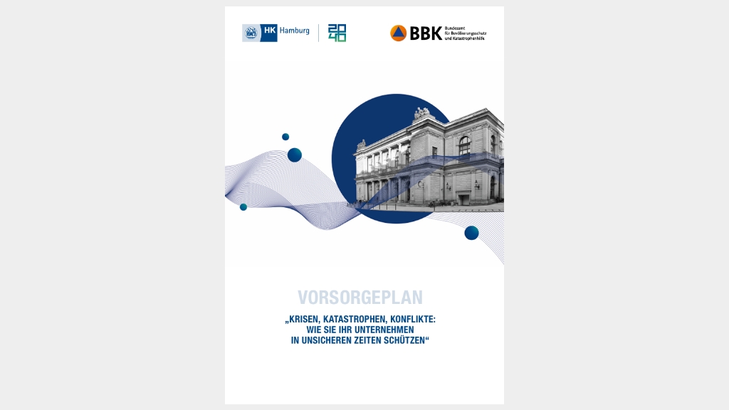 Download des Vorsorgeplans „Krisen, Katastrophen, Konflikte: Wie Sie Ihr Unternehmen in unsicheren Zeiten schützen“: https://www.handelskammer-hamburg.de/blueprint/servlet/resource/blob/6838376/46d7afba92084913b9fadbac719a3504/2512-hk-strategiepapier-krisenvorsorgeplan-data.pdf